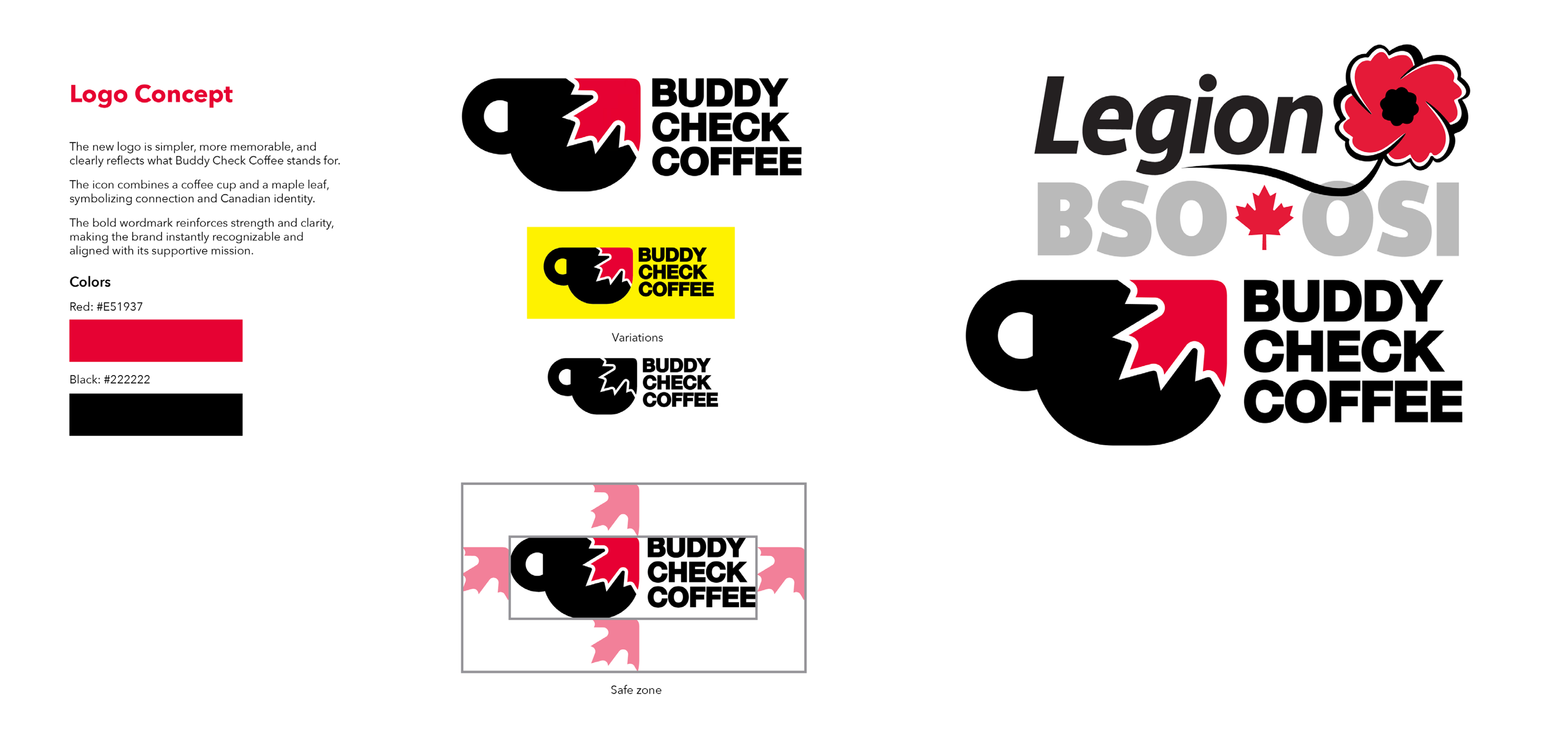 This was a large and multifaceted project with numerous deliverables that drew on both technical expertise and interpersonal skills. The client’s program, “Buddy Check Coffee,” did not align with the Royal Canadian Legion’s established brand identity, so I designed all assets to integrate seamlessly with the RCL style guide.