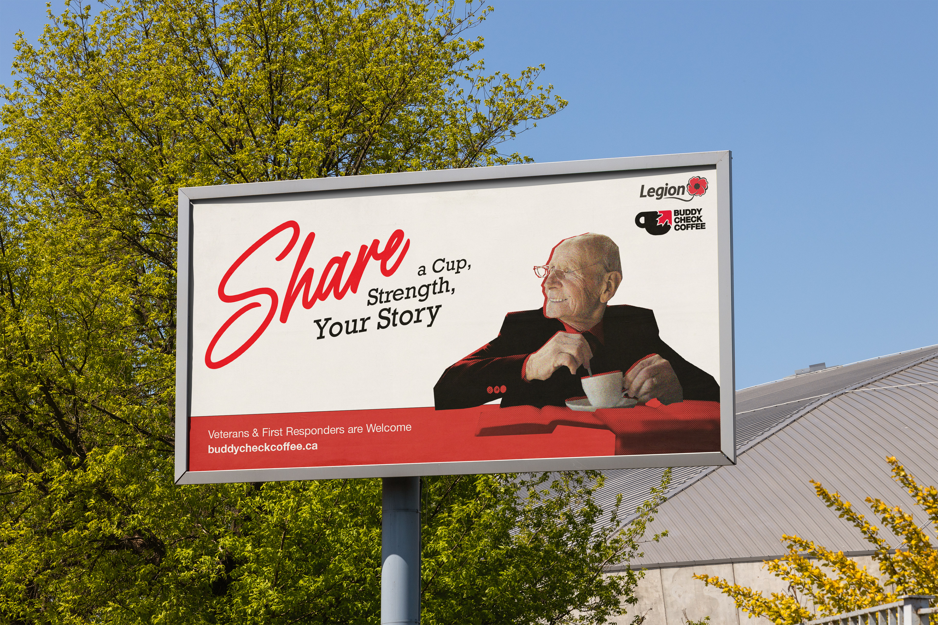 The goal of this project was to develop a cohesive set of materials—including a logo, ad campaign, website, mural, and promotional video—for a real non-profit organization, the Royal Canadian Legion Lambeth Branch 501, and their “Buddy Check Coffee” program.