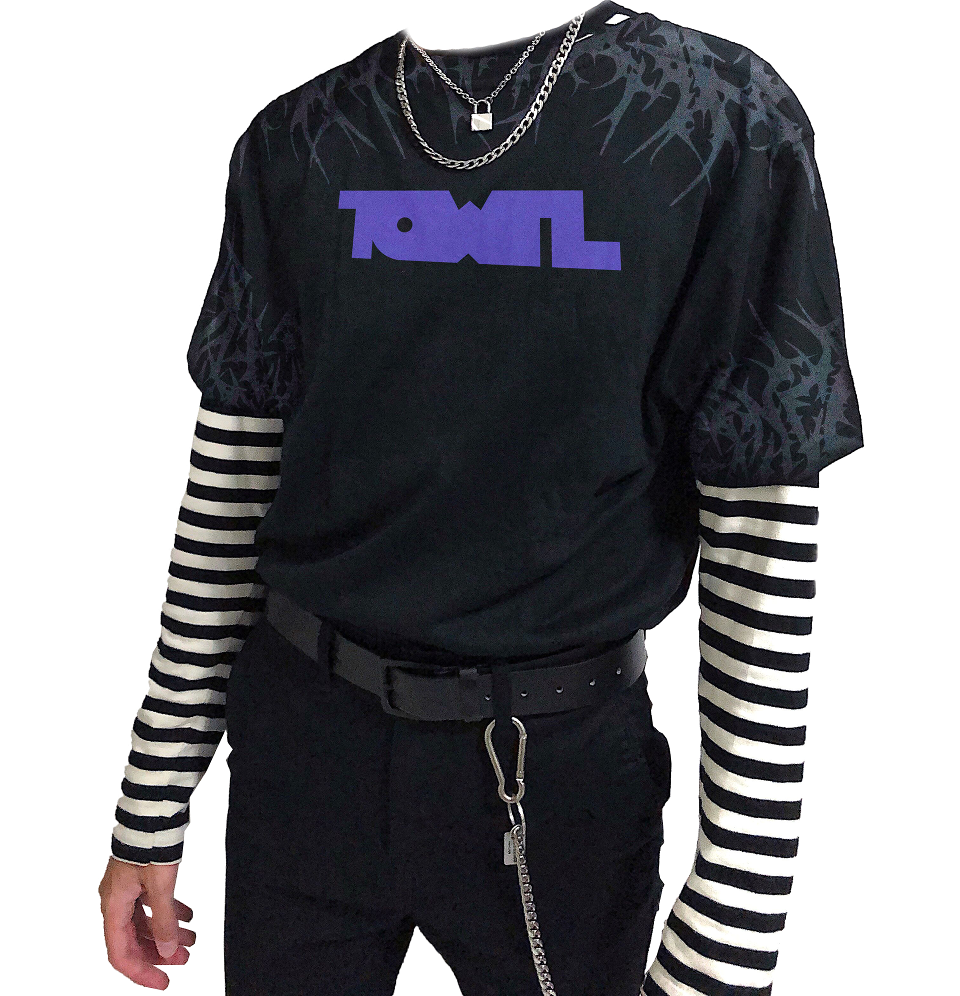 The TOWTL Company (The One Who Throws Lightning) targets a youth audience drawn to Grunge and Emo aesthetics. To reflect this identity, I developed a visual style featuring dark tones paired with bold “metal-style” typography. Bright purple accents were incorporated to add contrast and energy, symbolizing youth, individuality, and creative rebellion.