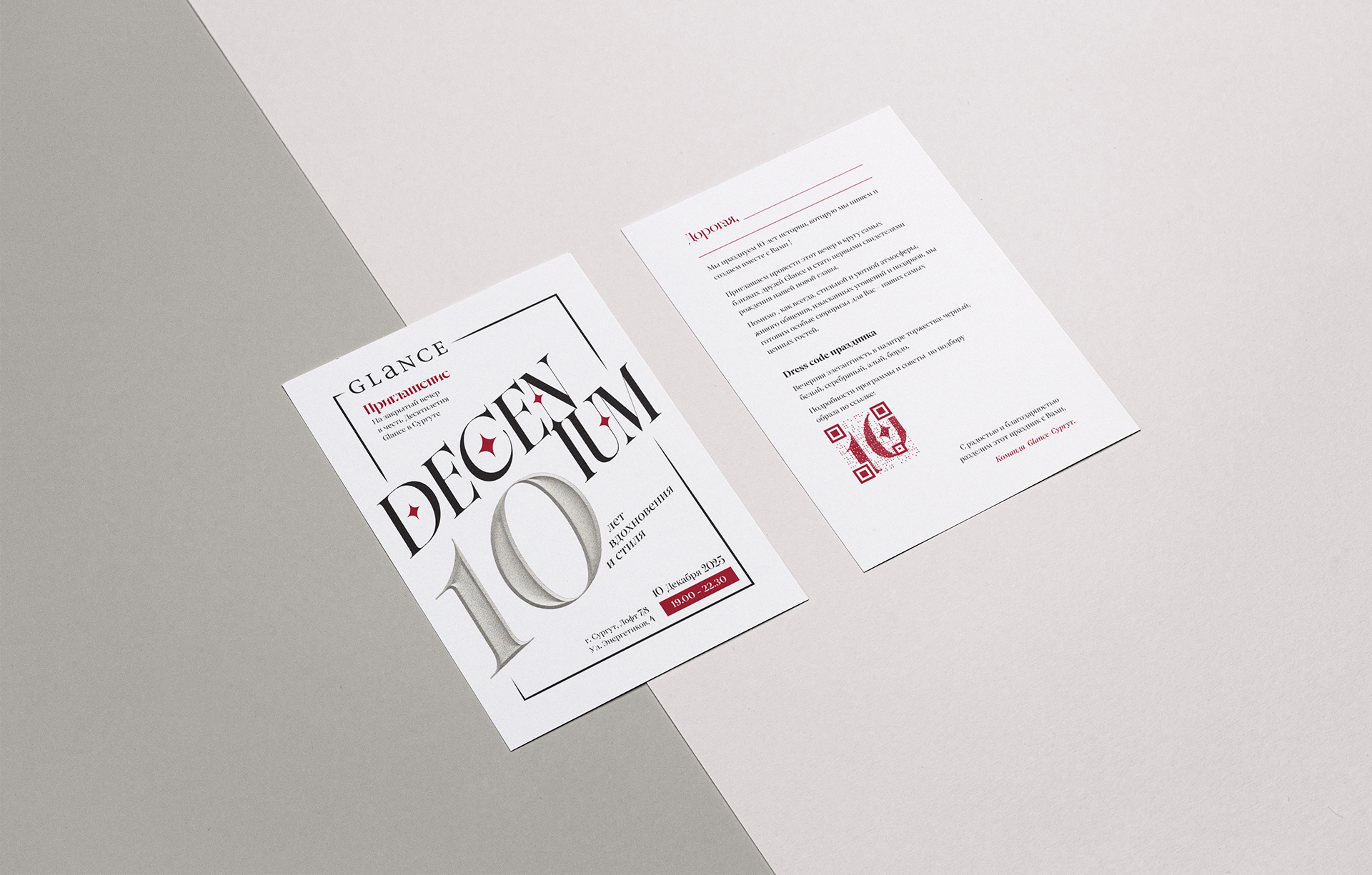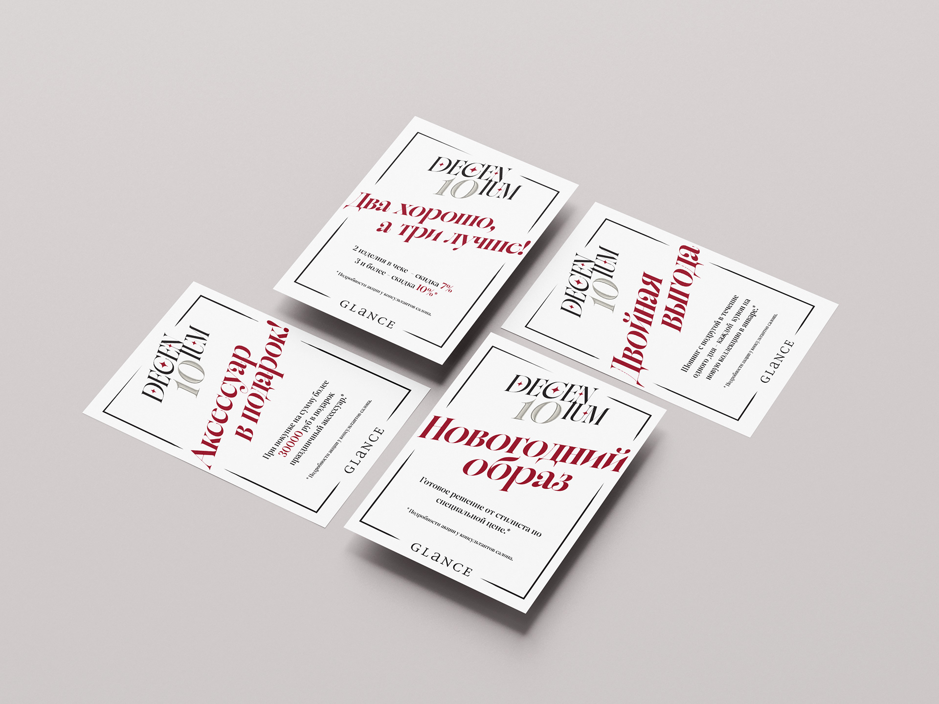 The objective was to design a comprehensive suite of promotional collateral for the Glance store's anniversary event. The project required a cohesive visual identity across multiple touchpoints to celebrate the brand’s milestone and engage its loyal clientele.